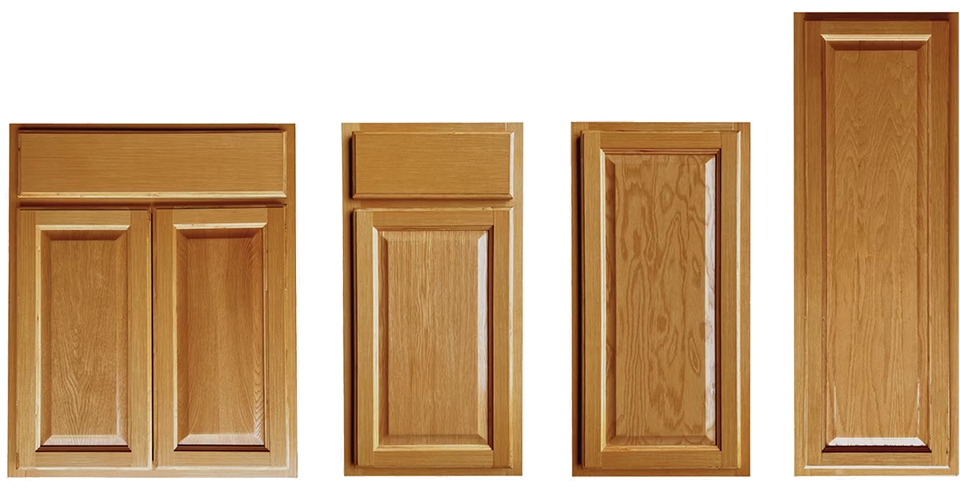 - Doors 3/4" Solid Hardwood door styles with straight top veneer raised panel.