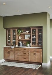 Wolf Dartmouth Hazelnut cabinetry offers a versatile and stylish solution for any modern home, combining the classic appeal of Shaker-style design with contemporary functionality. The medium-brown Hazelnut stain enhances the natural beauty of the maple wood, creating a warm and inviting atmosphere. Featuring full overlay mortise and tenon doors, these cabinets are designed for durability and aesthetic appeal. The solid wood dovetail drawer construction, full-extension undermount drawer glides with soft-close mechanisms, and hidden, adjustable hinges ensure smooth operation and longevity.