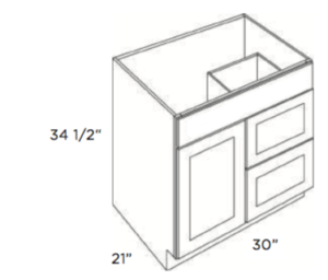 Width: 30 Height: 34-1/2 Depth: 21 Door: 1 Drawer: 2 Shelf: 0