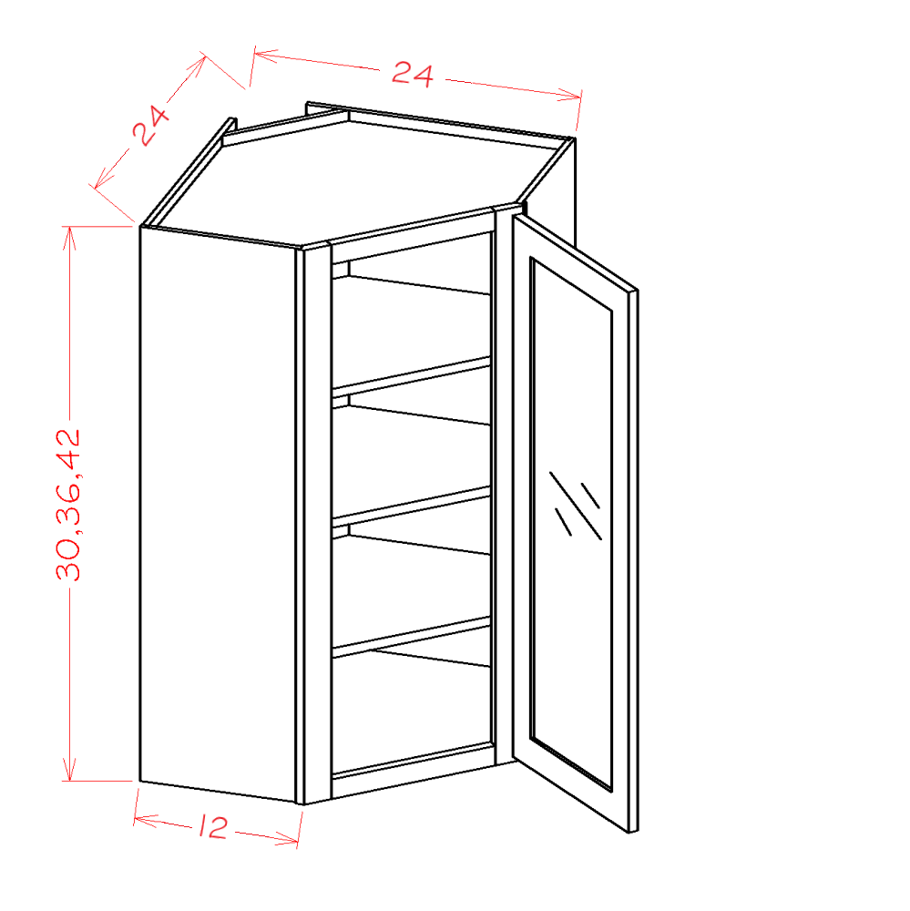 US Cabinet Depot Shaker Antique White Wall Diagonal Glass Door Corner Cabinet with Finished Interior – 24W X 36H X 24D-1D-2S *GLASS NOT INCLUDED
