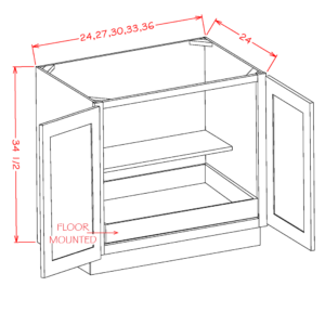 Will arrive in multiple boxes. Cabinet Included. Width: 24in Height: 34.5in Depth: 24in – Rollout Shelf: 1