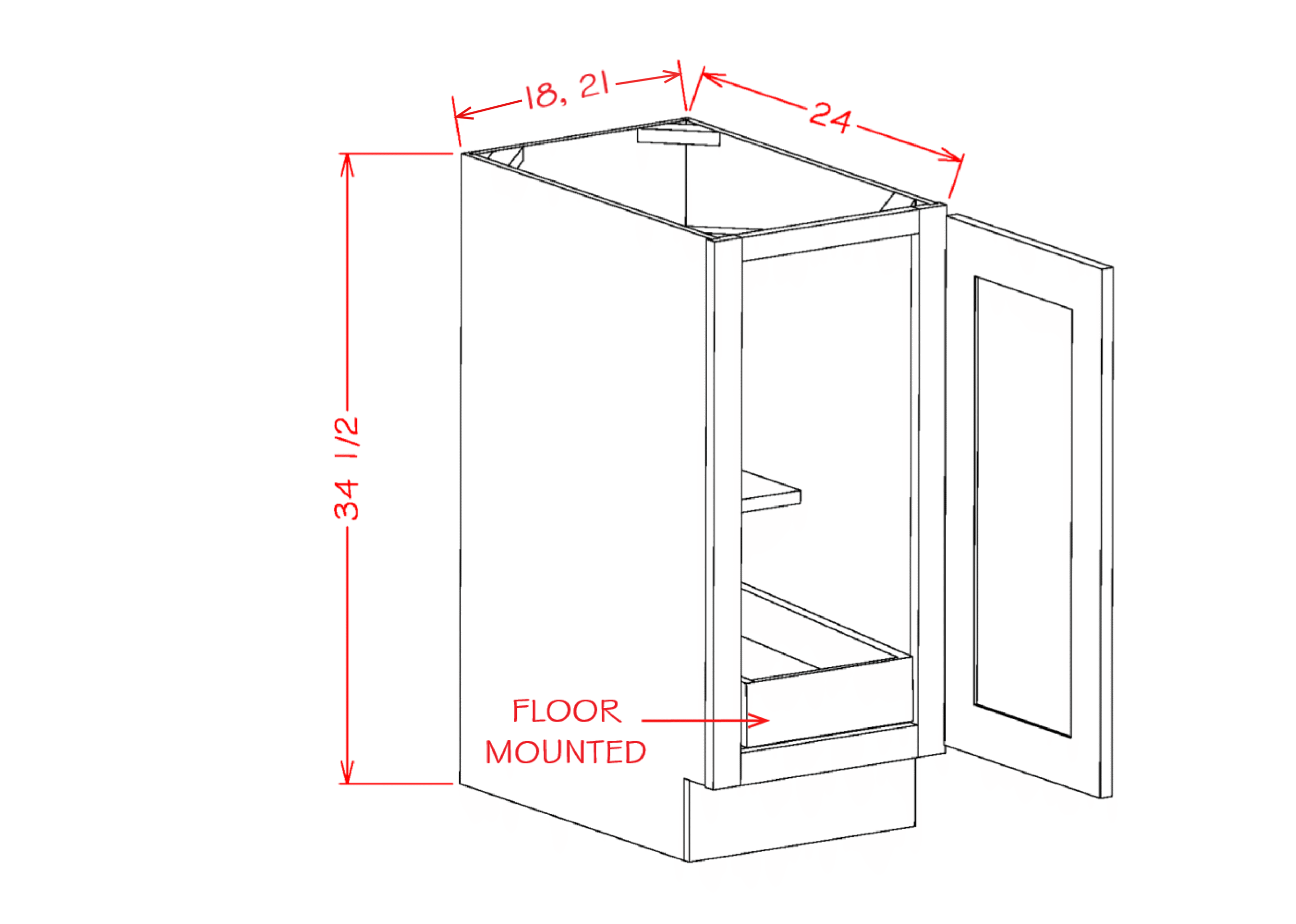 Single Full Height Door One Rollout Shelf Base Cabinet Kit – 18W x 24D x 34.5H