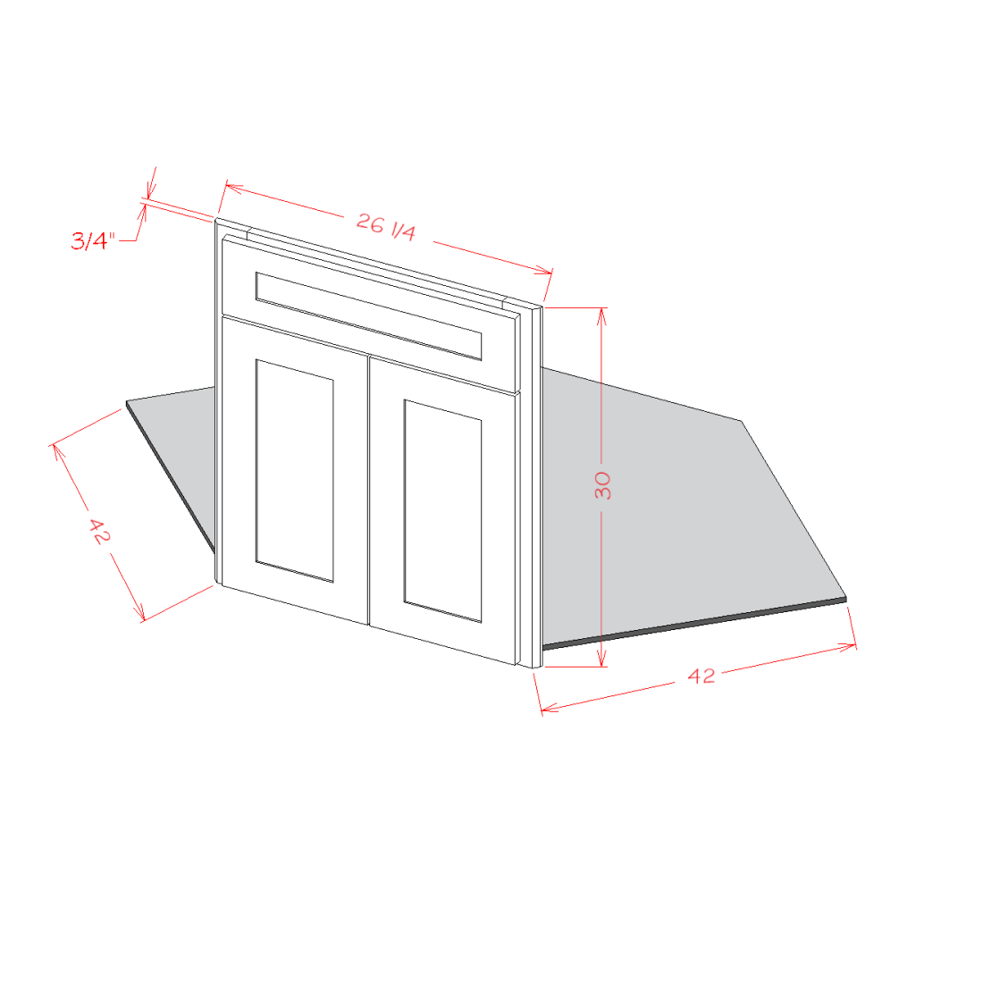 Door and Floor Only. Installed between cabinets. Width: 26.25in Height: 30in Depth: 0.75in – Door: 2
