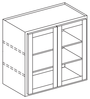 Wall Cabinet Double Butt Doors (Prepped for Glass), Three Shelves 36W x 36H x 12D